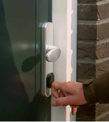 Auto‑lock, door‑ajar alerts, physical‑key backup